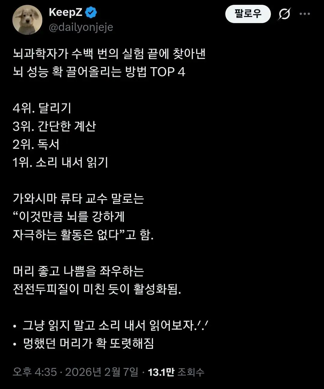 2 1 [세계엔] 뇌 성능을 확 끌어올리는 방법 오늘부터 읽으먼서 쳐야겠다. #유머 Posted on 7 hours 37 minutes ago 1,326 views by anonymous 출처 : 신고 해외 최대 해외 거주 한인 네트워크 바다에 광고하시면 대박납니다! 광고문의 관련게시물 [유머] 인기태그 사랑의(1750) 온도(1536) 당신이(638) 블랙(597) 20세기(589) 마녀의(534) 미운(513) 고백부부(448) 잠든(437) 동상이몽(423) 해외 최대 해외 거주 한인 네트워크 바다에 광고하시면 대박납니다! 광고문의 사진추가 댓글입력 추천하기 more