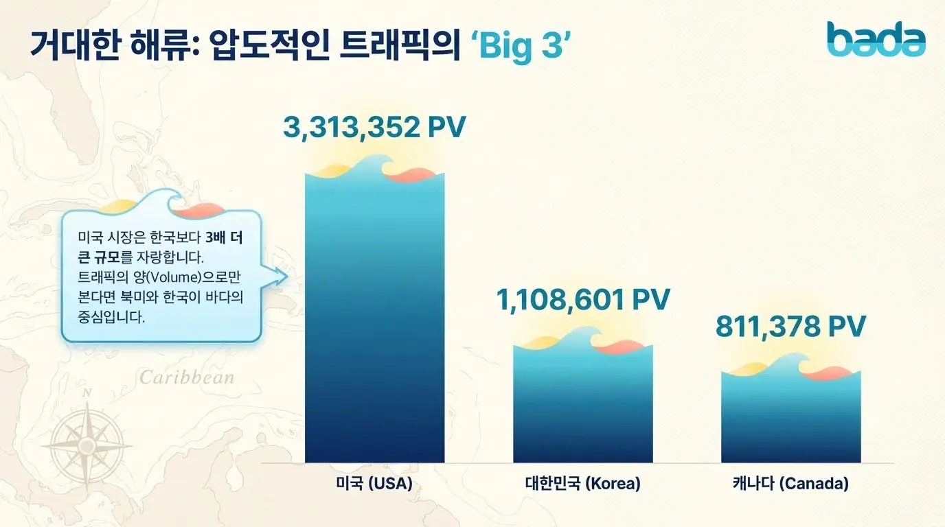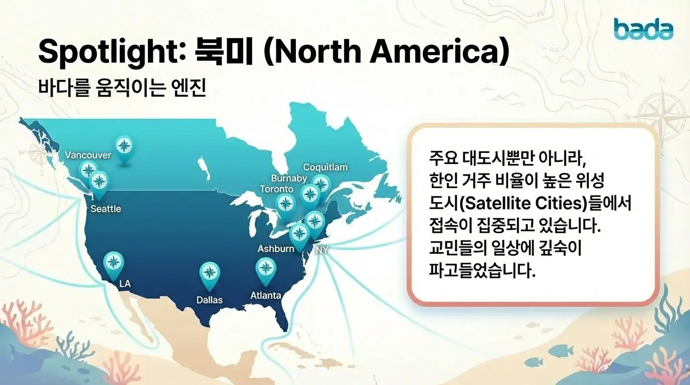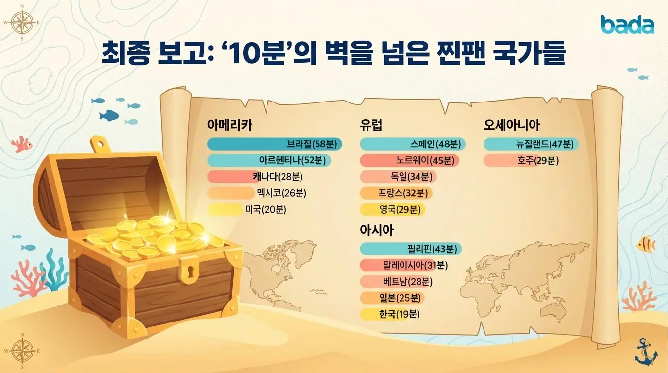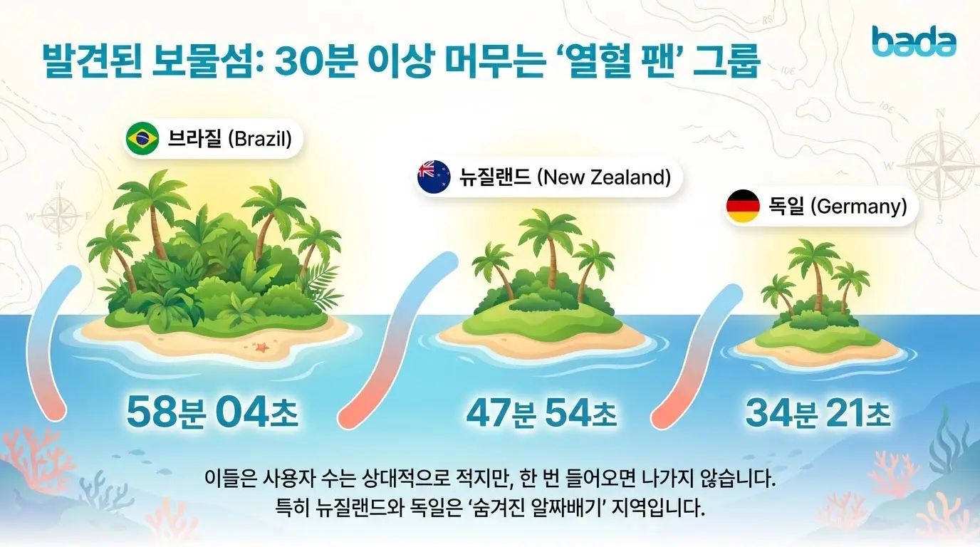 위는 저희 바다에 2026년 1월 동안 10분이상 체류하신 분들의 "국가별 도시별 사용자 몰입도 및 평균 체류 시간 보고서"입니다.