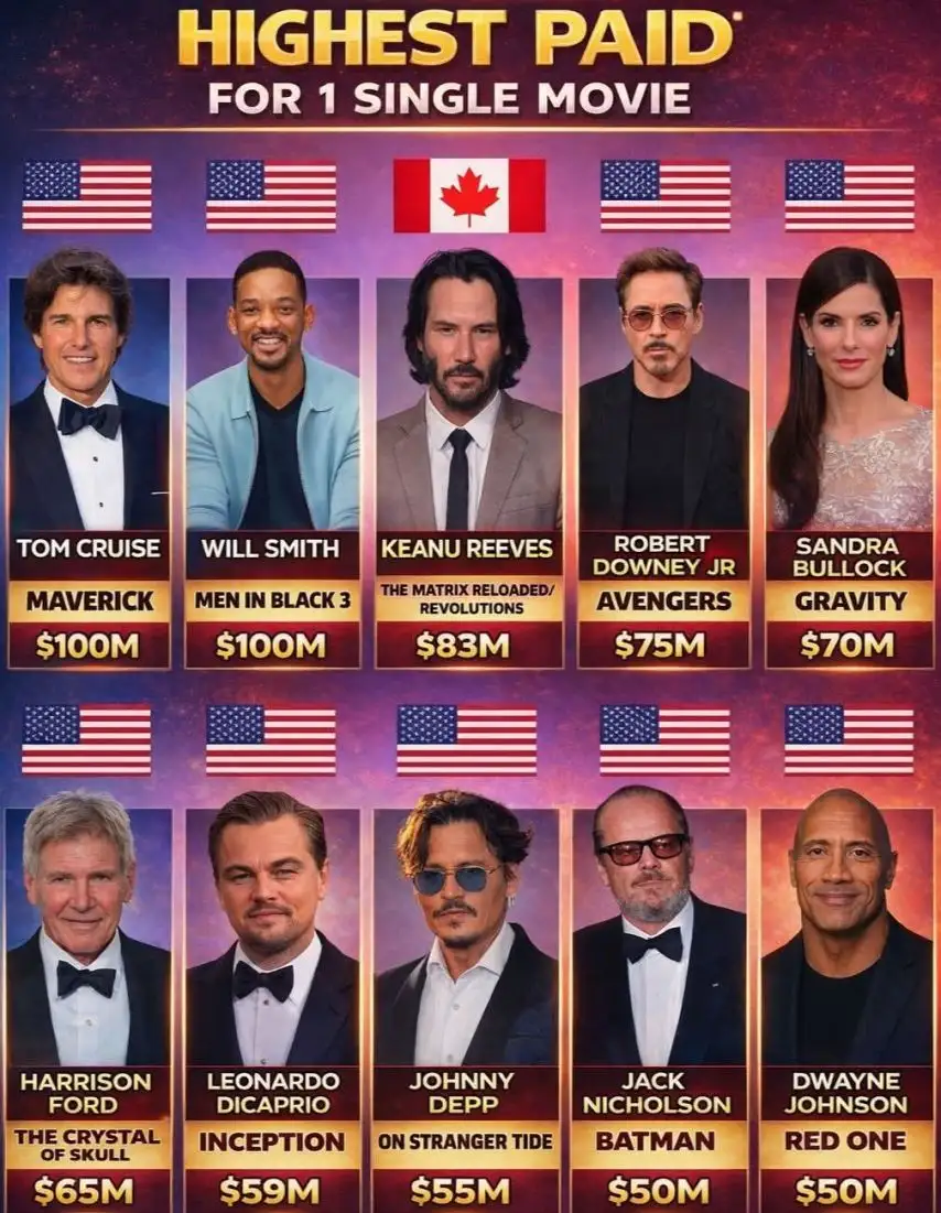최근 사례 중 가장 눈에 띄는 인물이다. 흥행 결과에 따른 보너스가 아닌, 영화 촬영 전 받는 순수 출연료로만 5,000만 달러(약 650억 원)를 받으며 역대 최고 기본급 기록을 세웠다.