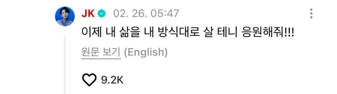 정국아, 위버스에 편지 써서 아미가 받아야 할 설명을 해줘. 그리고 그 K-pop 그룹들 팔로우하는 거 그만둬. 그들 중 상당수는 아미의 적이야. 아미를 무시하는 행동은 이제 그만해.