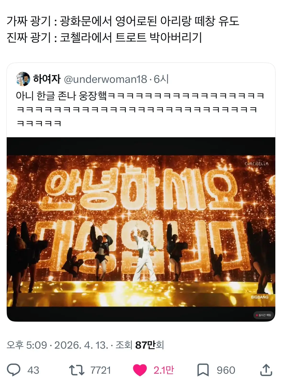 1 2 [세계엔] 빅뱅 코첼라 vs 방탄 광화문 개웃기네 아 #코첼라 #빅뱅 #VS #방탄 #광화문 # 눈매교정 # 메이크업배우기 Posted on 1 day 20 hours 35 minutes ago 2,966 views by anonymous 출처 : 신고 해외 최대 해외 거주 한인 네트워크 바다에 광고하시면 대박납니다! 광고문의 관련게시물 [유머] 인기태그 사랑의(1750) 온도(1536) 당신이(638) 블랙(597) 20세기(589) 마녀의(534) 미운(513) 고백부부(448) 잠든(437) 동상이몽(423) 해외 최대 해외 거주 한인 네트워크 바다에 광고하시면 대박납니다! 광고문의 사진추가 댓글입력 추천하기 more